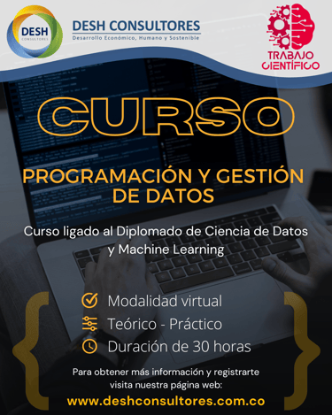 Impulsa tu carrera con nuestro Diplomado en Analítica de Datos y Machine Learning, diseñado para proporcionarte las habilidades necesarias en análisis y toma de decisiones basadas en datos. Este diplomado se compone de cuatro cursos especializados que cubren temáticas clave como programación, gestión y visualización de datos, análisis estadístico y machine learning.