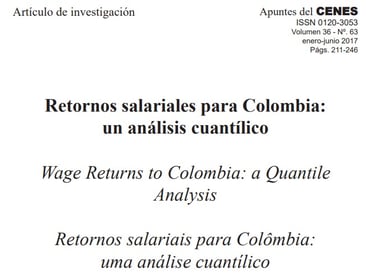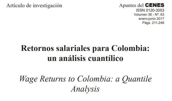 Castillo Robayo, C. D., Da Silva Bichara, J., & Pérez-Trujillo, M. (2017). Retornos salariales para Colombia: un análisis cuantílico. Apuntes del CENES, 36(63), 211-246.